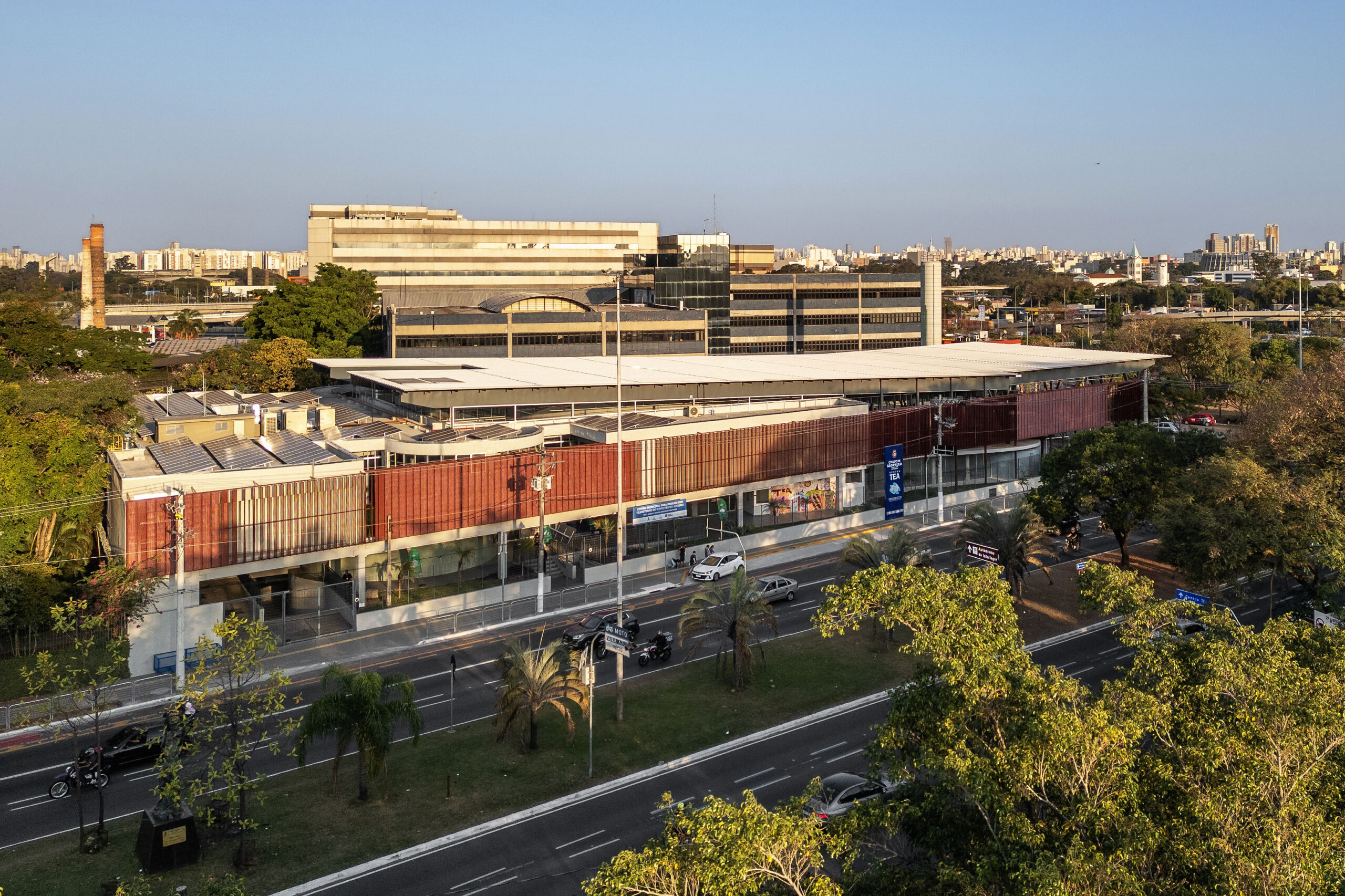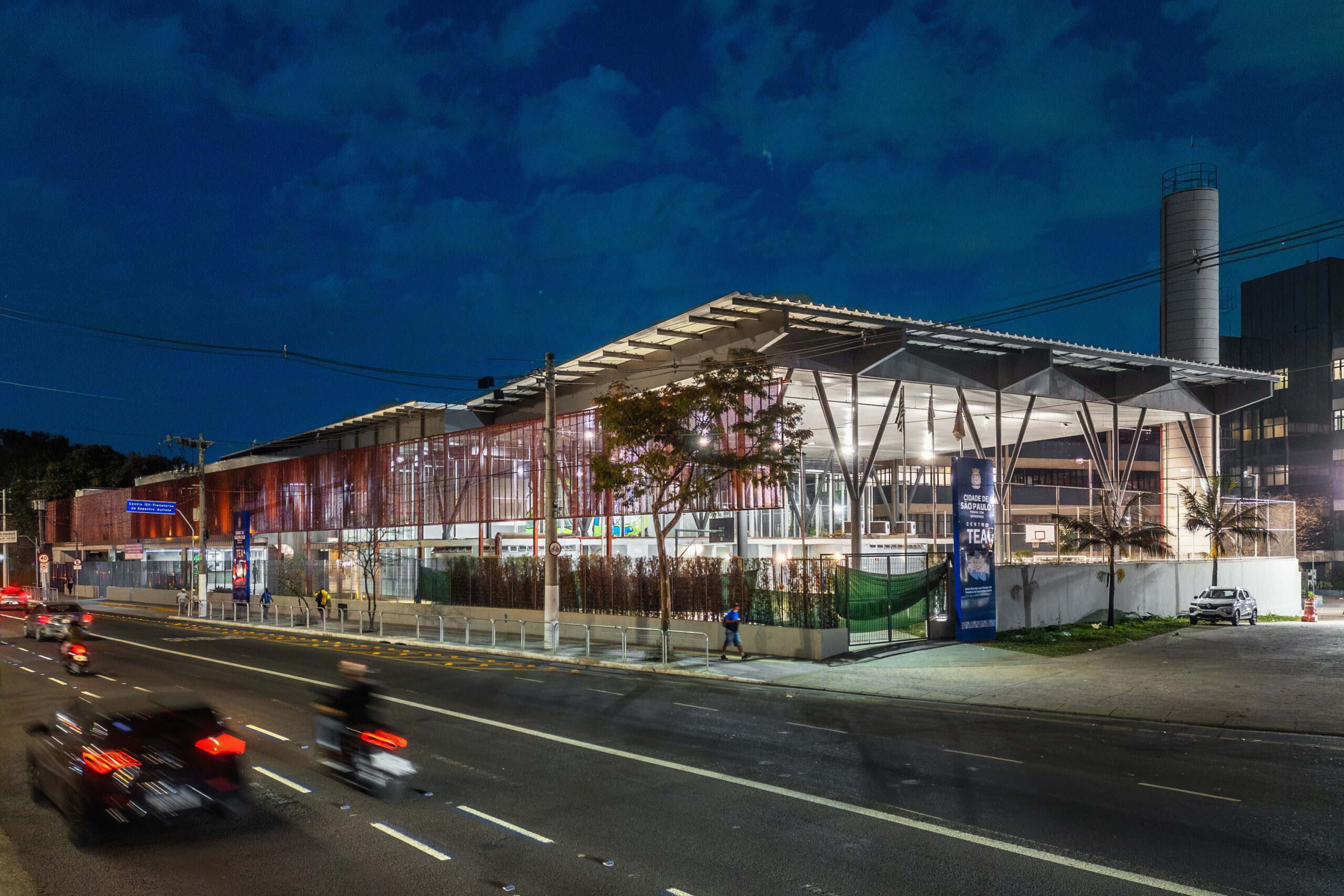 É composto por subsolo e dois pavimentos unidos por cobertura metálica que unifica o conjunto.