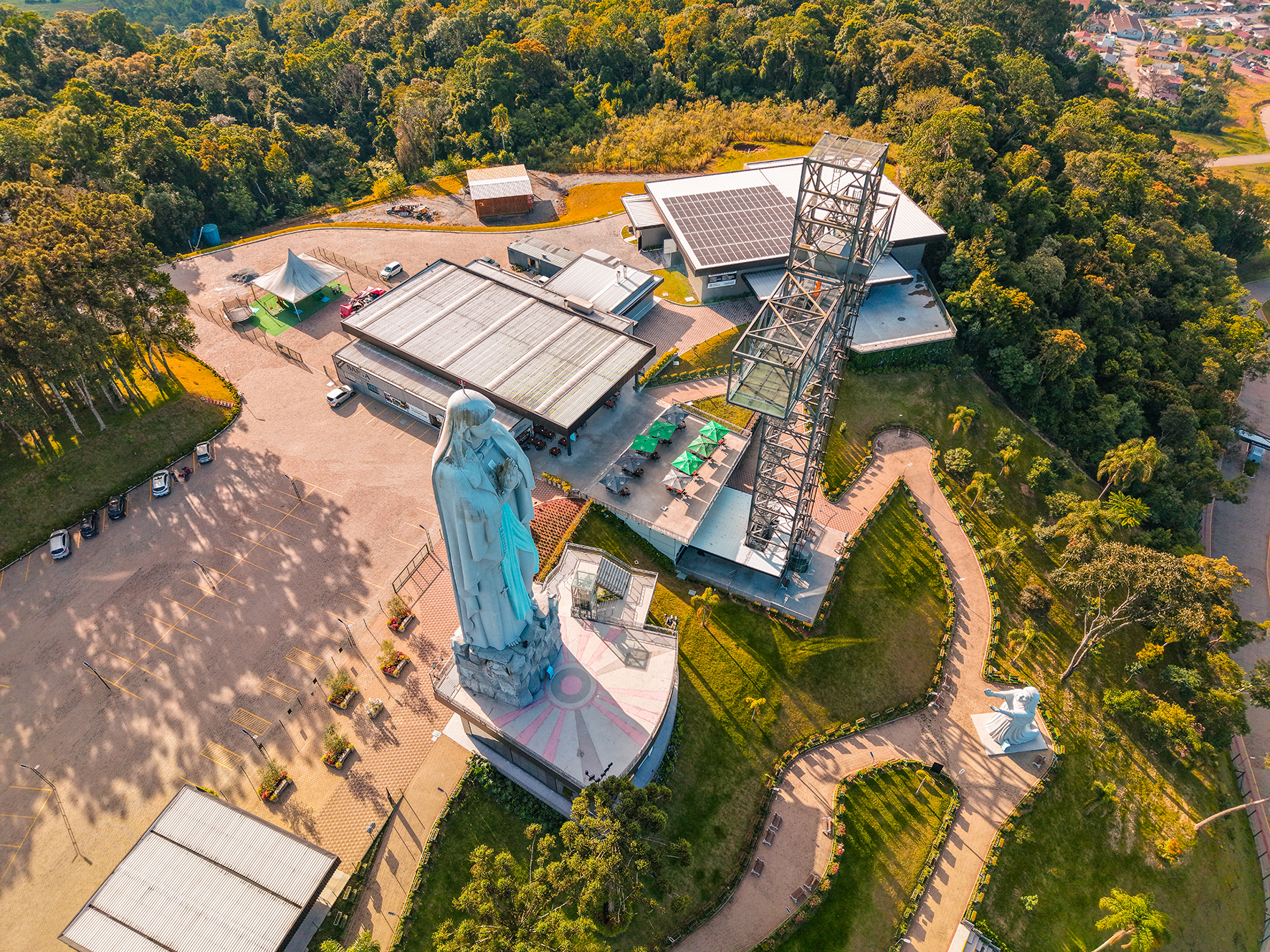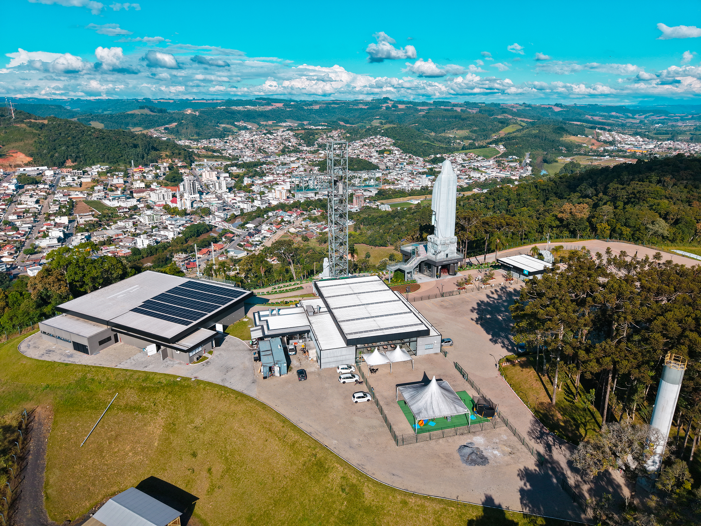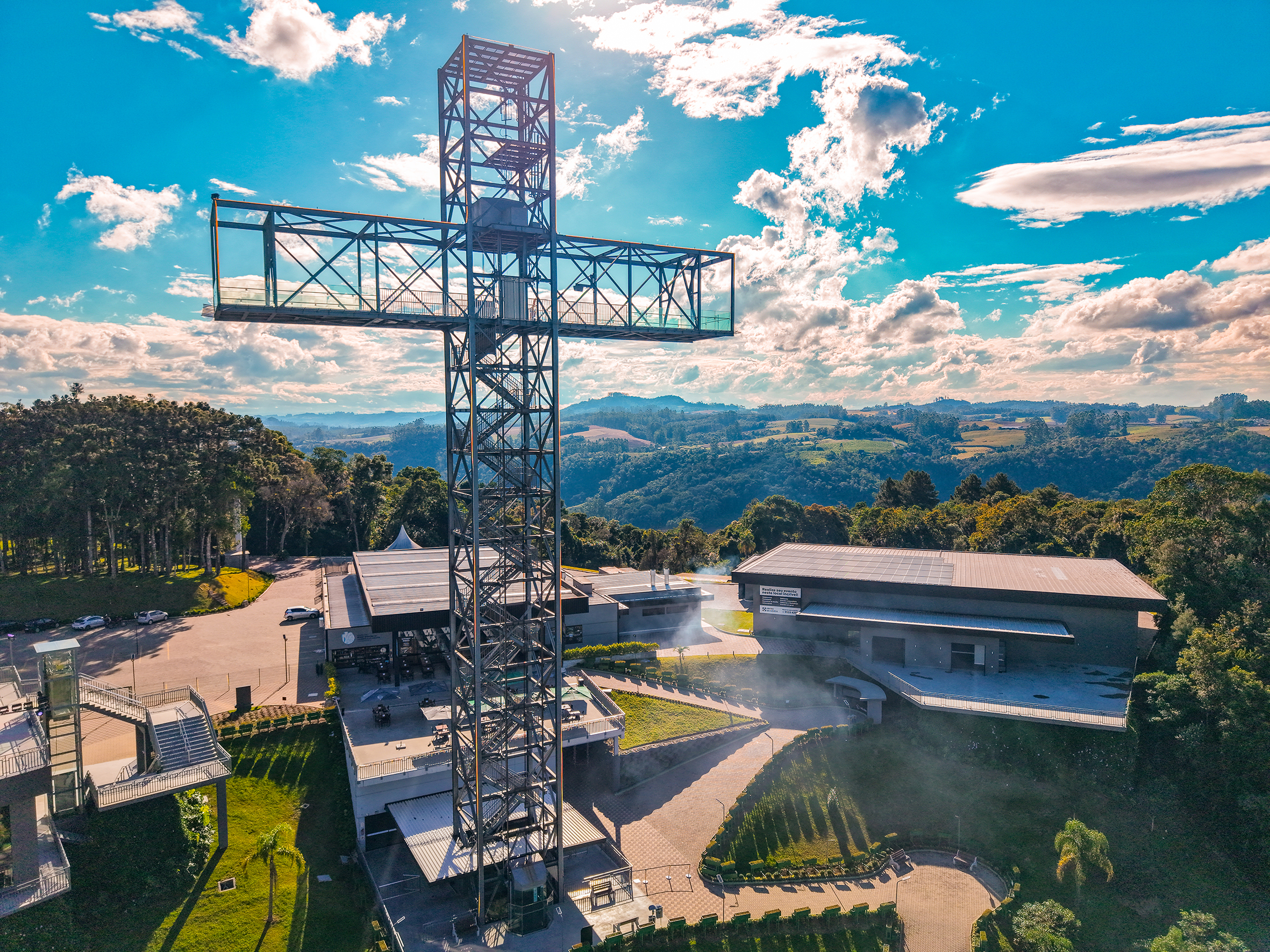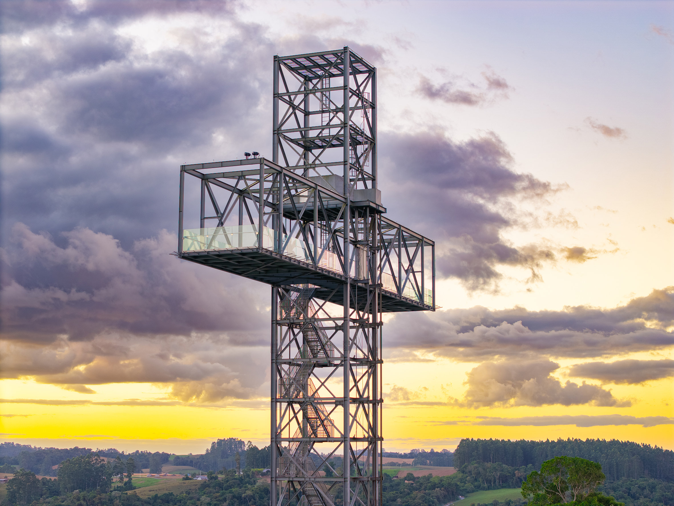 A altura total de 50m com um mirante a 35m de altura tornou o projeto um desafio de engenharia, e a beleza estrutural se alcançou com o uso de perfis W em todo o corpo em formato de cruz. E eh claro que a galvanização trouxe um tom leve e garantia de durabilidade e sustentabilidade a este lindo projeto e homenagem.