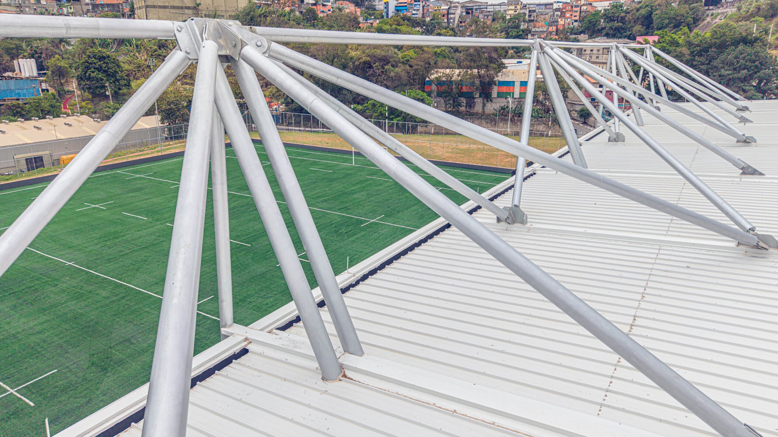 Com um design leve, funcional e contemporâneo, a obra conta com uma estrutura metálica de aproximadamente 70 toneladas, cobrindo uma área total de 823 m² com telhas do tipo sanduíche, que proporcionam conforto térmico e acústico, além de maior resistência e durabilidade.